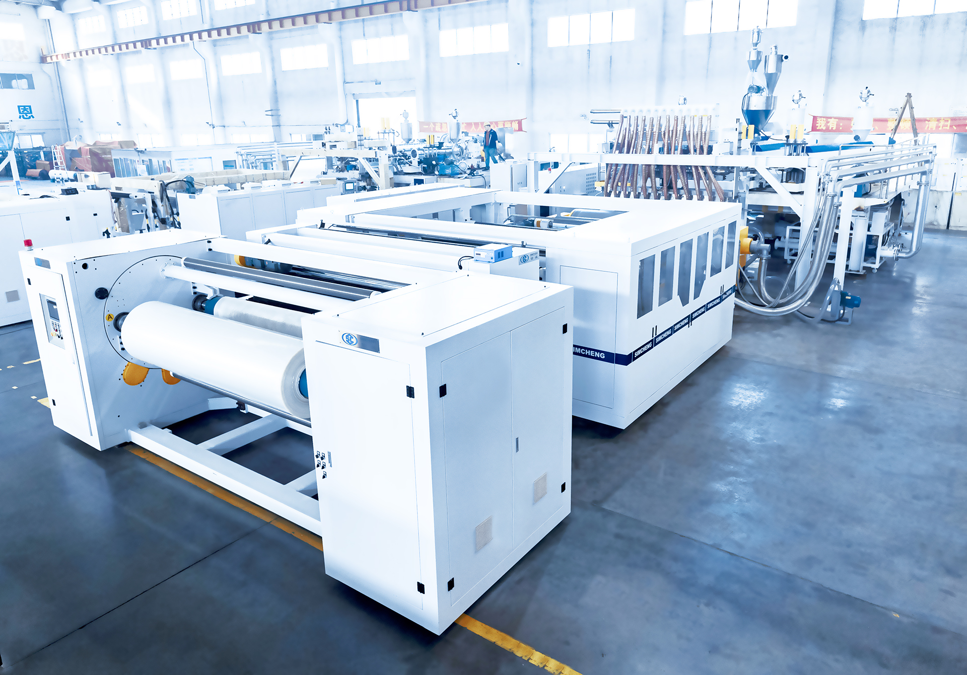 包含保護膜設備、木紋膜設備、高阻隔膜設備、PET薄膜設備。PET膜又名耐高溫聚酯薄膜。它具有優(yōu)異的物理性能、化學性能及尺寸穩(wěn)定性、透明性、可回收性,可廣泛的應用于磁記錄、感光材料、電子、電氣絕緣、工業(yè)用膜、包裝裝飾、屏幕保護、光學級鏡面表面保護等領域。